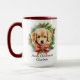 Merry Christmas Cute Watercolor Puppy Dog Name Mug presenta un lindo cachorro de acuarela con una corona floral festiva con un arco rojo y personalizado con tu texto y nombre personalizado como "Feliz Navidad" en escritura moderna de caligrafía. Perfecto para Navidades y vacaciones como regalos para la familia y amigos, amantes del perro, madre de perro, padre de perro, niñera de perro y más. Personalice editando el texto en el cuadro de texto proporcionado. Creado por Evco Studio www.zazzle.com/store/evcostudio