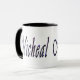 Micheal, Logo, Mug, harto de que la gente se pellizque o use su taza de trabajo, es un logo azul cursivo para una persona llamada Micheal, https://www.zazzle.com.au/naturalcauses*
