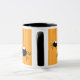 Arañas mimosas lindas del dibujo animado en un fondo rayado anaranjado. Taza temática de Halloween de la diversión. Sea grande como premio para los juegos de sociedad de Halloween. © de Copyright Lisa 2010 Marie Robinson. Todos los derechos reservados.