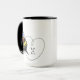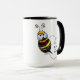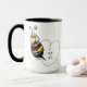 Conmemorar tu amor con un lindo gesto. El dibujo de tinta y lápiz que representa una abeja con burbujas en una minúscula corbata de arco rojo hace un camino en forma de corazón. Arte y diseño de Andie.