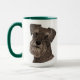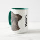 Mug personalizada para su Schnauzer en miniatura. Personalizar con la imagen y el nombre de su perro; también se pueden cambiar las fuentes, los colores y el color de la taza.