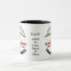 "Mi estilo de crianza de OCTUBRE a DICIEMBRE es que estoy LLAMANDO SANTA" declara esta linda taza para mamá. La imagen y el texto están impresos en dos lados, con su nombre y los nombres de sus hijos en el medio. Los colores utilizados incluyen negro, verde, rojo y oro. ¡Qué lindo!