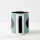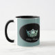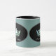 Esta taza de dos tonos tiene un mango negro y un interior negro. El fondo de Dusty Aqua sobre la taza blanca tiene ovarios a cada lado con una corona de desfile verde acuático en el centro de los ovales bordeados por el gris. Texto personalizado debajo de cada corona para su personalizar. Muestra de texto mostrada en "Miss Montana". Personalizar este artículo o compra como se muestra.