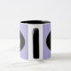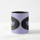 Esta taza de dos tonos tiene un mango negro y un interior negro. El fondo morado claro sobre la taza blanca presenta ovales a cada lado con una corona de concurso morado claro en el centro de los ovales bordeados por el gris. Texto personalizado debajo de cada corona para su personalizar. Muestra de texto mostrada en "Miss Montana". Personalizar este artículo o compra como se muestra.