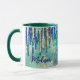 Taza Moda azul turquesa purpurina oro goteo monograma