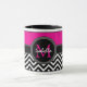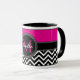 ¡Modelo elegante del galón del zigzag en negro, blanco y caliente, rosas fuertes! Añada su nombre y monograma.