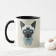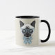 Características del este diseño que un gato siamés se vistió en un par azul de vidrios y de pajarita a cuadros.