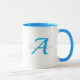 Taza Modern Blue Monogram & Script Name Personalized