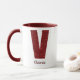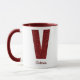 Enjoy a stylish touch of sparkle with this modern glitter monogram mug. The bold glitter-style initial pairs beautifully with a personalized name in a clean, minimal layout. Featuring a matching red handle and interior, this mug is the perfect blend of trendy and elegant. Makes a thoughtful personalized gift for Christmas, winter holidays, birthdays, teachers, coworkers, or anyone who loves modern glitter designs.