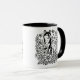 Celebrate the beautiful friendship between cats and dogs with this charming coffee mug featuring a majestic husky and adorable cat surrounded by an enchanting garden of blooming flowers. The contemporary black and white line art showcases intricate botanical details with flowing leaves, delicate petals, and decorative flourishes that frame these beloved pets perfectly. The detailed illustration captures the husky's distinctive facial markings and alert expression alongside the cat's sweet, content demeanor, creating a heartwarming scene that any pet lover will treasure. This modern artistic design brings elegance to your daily coffee ritual while celebrating the special bond between our furry family members.