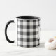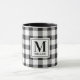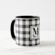 taza de café/té en monograma diseñada por el personalizado, con monograma personalizado y nombre familiar en un patrón de comprobación de búfalo blanco y negro, plaid/gingham. Navidades/Ideas de regalo personalizadas de vacaciones. Regalos para ella. Navidades monograman regalos.