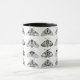 tazón de café con un patrón detallado y hermoso de polillas en blanco y negro, con tonos grises sobre un fondo blanco