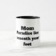 A meaningful ceramic mug featuring the heartfelt message “Mom, paradise lies beneath your feet.” This elegant and minimalist design makes every coffee or tea moment a reminder of love, respect, and appreciation for a mother.