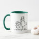 Madre e hija se dan la mano. La camisa de la madre decía "mami" y la camisa de la hija decía "yo". Personalice esta taza con sus propios nombres usando el botón "Personalizar".