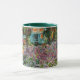 Una jarra florida de Monet con hermosos iris rosas y morados en un jardín brillando bajo árboles altos. Un gran regalo de Monet para los amantes del impresionismo y del arte francés. Impresionismo natural pacífico con flores y paisajes pintorescos.