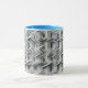 This is a Habatour Creations coffee mug, filled with an authentic monochrome abstract geometric digital pattern design.