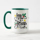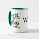 Personalized JOY IN JESUS Christian Christmas mug with CUSTOMIZABLE MONOGRAM, bold black script typography and holly. Ideal personalized drinkware during the festive season, with a strong Christmas message of joy in Jesus all year round. You can PERSONALIZE with your monogram or initial at the center. Matching gifts available.