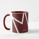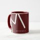 El negro personalizado burdeos rojo monograma con un diseño abstracto único que hará feliz al arte moderno y amante de las "cosas al azar" de tener una taza con su nombre diferente al de los diseños estándar. La letra sans serif grande está en un ángulo formando líneas diagonales como diseño, y espacio para un nombre de negocio, presupuesto personalizado o texto personalizado en el lado posterior.