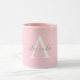 Monograma blanco personalizado sobre fondo rosado, añada su monograma y su nombre para obtener una taza elegante. un regalo monogramado perfecto, Personalícelo ahora; haga clic en el botón personalizar para añadir su inicial y su nombre a ambos lados de la taza.