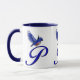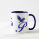 Elegante letra monograma P con un bonito de pájaro azul o taza de té. Haga clic en el Personalizar para agregar texto. Gran idea de regalo. Esta imagen está disponible en muchos productos de mi galería.