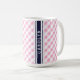 Taza monograma de patrón de gingham de la marina rosa p