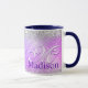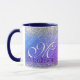 Monograma purpurina de plata malteado de color púrpura. Café mug. Una taza moderna purpurinoso y de moda. Es el regalo perfecto para 16 cumpleaños, boda, ducha de novia, aniversario, ducha de bebé o soltera para alguien que ama el lujo glam y los estilos de moda. Ya sea para día de San Valentín, Navidades o cualquier ocasión en general, esta linda taza de café hará una gran idea de regalo para cualquier chica o mujer que ame la moderna y brillante elegancia. NOTA: Se trata de gráficos impresos planos, sin purpurinas, joyas ni piezas elevadas.