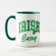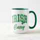 Muestra tu orgullo irlandés con este divertido tazón de café de dos tonalidades que incluye la palabra "IRISH" en un tipo de letra curvado retro con letras de barniz en colores angustiados de luz y verde oscuro. Personalice agregando su nombre o texto especial. Un gran accesorio para la temporada de San Patricio.