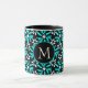 Taza Monograma del patrón de flor Aqua Blue & Black Bat