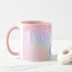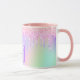 Un fondo holográfico de moda con unicornio y colores pastel arcoiris en rosa, violeta, verde menta. Decorado con goteo en rosa y violeta. Personalice y agregue sus iniciales de monograma. Letras de color púrpura negrita. ¡Un poco de luz diaria para alegrar el día!