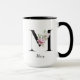 Taza Monograma, letra M con flores acuarelas