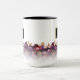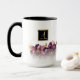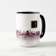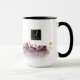 Elegante Morado Dorado Floral Negro Monograma. Flores florecientes en rojo profundo, morado y dorado detalles y hojas están apareciendo de un gradiente suave en la parte del amante alrededor de esta taza. Un cuadrado impreso en negro con un marco dorado, su letra de monograma y su personalizable de nombre completo para usted en ambos lados. Una taza femenina y elegante, una agradable adición a tu espacio de oficina. Sip en estilo. Vea la coincidencia de productos con el mismo tema de diseño en la colección. Mezclar y emparejar o usar solo.