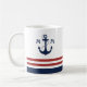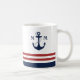 Monograma del ancla de los azules marinos con las rayas náuticas rojas y blancas.