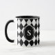 Taza Monograma Patrón de diamante de Harlequin blanco y