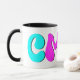 Elegante CMYK Funky Retro Mug con PERSONALIZABLE MONOGRAM para diseñadores gráficos, impresoras y estudiantes de arte. El diseño muestra CMYK en una tipografía retro funky en cian, magenta, amarillo y negro (llave) envolviendo alrededor de la taza. En el K hay un PERSONALIZABLE MONOGRAM que puede reemplazar con su inicial. Un poco diferente de tu taza de café CMYK promedio!