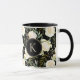 Flores acuarelas blancas de vainilla monogramadas, acentuadas por follaje verde sobre fondo negro. Cambie fácilmente el monograma de la plantilla a la inicial deseada utilizando la herramienta de edición de Zazzle. Consulte nuestra colección para ver los elementos coincidentes. Personalizable total y transferible. Romántico Monograma Floral Vainilla Vainilla Vainilla Vegetación Vegetal Mug. Artista Yulia Podlinnova