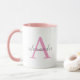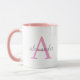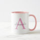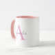 Monograma rosado personalizado sobre fondo blanco, añada su monograma y su nombre para obtener una taza elegante. un regalo monogramado perfecto, Personalícelo ahora; haga clic en el botón personalizar para añadir su inicial y su nombre a ambos lados de la taza.