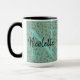 Taza Monograma sobre turquesa de plumas Purpurinoso de