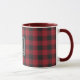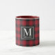 taza de café/té en monograma diseñada por el personalizado, con monograma personalizado y nombre familiar en un patrón de comprobación de búfalo festivo negro y rojo, plaid/gingham. Navidades/Ideas de regalo personalizadas de vacaciones. Regalos para ella. Navidades monograman regalos.