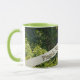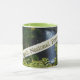 Persiguiendo cascadas en Carolina del Norte. La impresionante y impresionante cascada de las Cataratas de Glass en el Bosque Nacional Pisgah en las Montañas Blue Ridge de Carolina del Norte, se ve a través de un bosque de bosques verdes en esta taza fotográfica de café. En el fondo de una garganta de agua blanca se hunde esta cascada de 20 pies de altura cerca de Brevard, NC en el condado de Transilvania, la Tierra de las Cataratas. Esta es la fotografía original del paisaje de viajes de JLW_PHOTOGRAPHY.