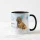 El nombre de tu perro en esta taza crea un encantador recordatorio diario de tu amor por tu perro Bloodhound, mucho después de su muerte. Un entorno celestial con nubes y el perro tiene alas y un halo.