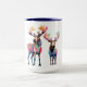 A vivid, colorful moose stands proudly, adorned with abstract patterns and vibrant hues. The antlers fade from orange to pink, while the torso features floral and geometric shapes in blues, reds, and purples.