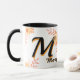 floral monogram mug, letter M-write u name coffee cup, personalized gift mug, initial coffee mug, custom name mug, flower letter mug, monogrammed tea cup, unique gift for her,