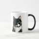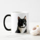 El gato puede aparecer silenciosamente de dondequiera, mirar fijamente en los ojos e intentar hipnotizar al dueño, la ha ha. La foto oscura morphs en la foto del gato cuando se añade la agua caliente o el café, para entretener a los dueños del gato que son familiares con los gatos que aparecen repentinamente donde no estaba el gato antes de que él él él. Imagen del gato también disponible en la taza clásica, taza del viaje, y en dos diversos tamaños.