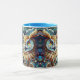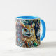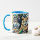 El arte de Ai representaba a un lobo y búho en un estilo de mosaico de azulejos. Ojos azules lobo y tazas serias de café de búho. Genial para cualquiera que ame la vida salvaje.