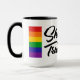 Este colorido diseño presenta una bandera arcoiris y una frase inspiradora.