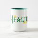 Disfruta del esplendor de una taza combinada con mango verde, llanta e interior, haciendo una declaración audaz con el mensaje de estado Be-Health-Wise™.