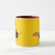 Imagen fotográfica de abeja de miel duplicada a ambos lados de la taza. El fondo amarillo puede ser personalizado.