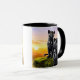 Mug avec une image de deux panthères noires au levé du jour, l'ainé au premier plan, le plus jeune assis sur un rocher.