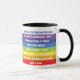 Muestra tu amor y apoyo a toda la familia humana con esta taza duradera. El barro arco iris dice: "Nos esforzamos por ser radicalmente inclusivos. Esta tierra es tierra indígena. Ningún ser humano es ilegal. Las vidas negras importan. El cambio climático es real. Los derechos de la mujer son derechos humanos. Todos los géneros son completos y buenos. El amor es amor".