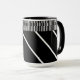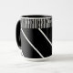 Esta taza blanca y negra de nuestra colección "Moda en franjas" le añadirá un hermoso toque a su tiempo o tiempo con los amigos.